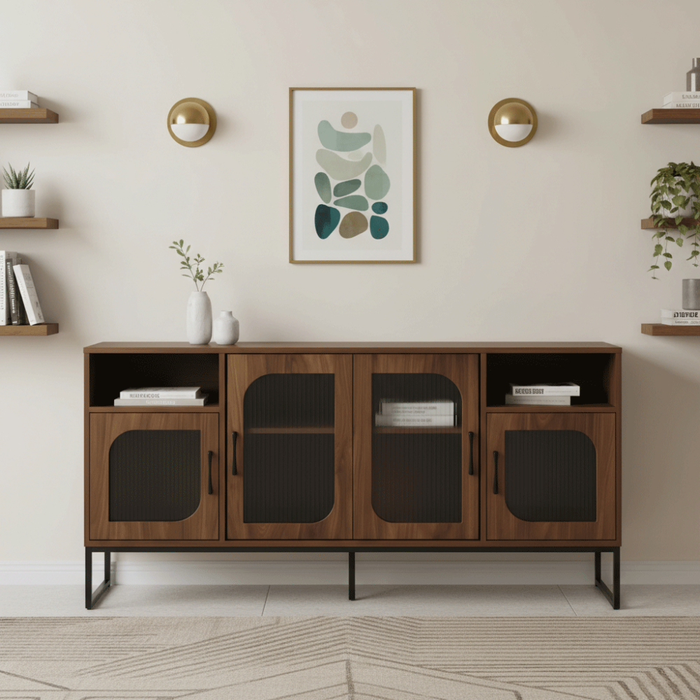 - غرفة المعيشة: يستخدم كقطعة تخزين أنيقة أو لعرض الديكورات.. يضيف لمسة تنظيم وفخامة للمكان.