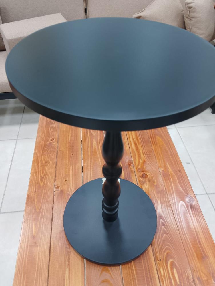 التصميم يتكون من ثلاثة أجزاء رئيسية: سطح دائري علوي، عمود مركزي منحوت بشكل فني، وقاعدة دائرية سفلية توفر الثبات والتوازن. جميع الأجزاء مصنوعة من خشب عالي الجودة بتشطيب ناعم ومقاوم للخدوش.