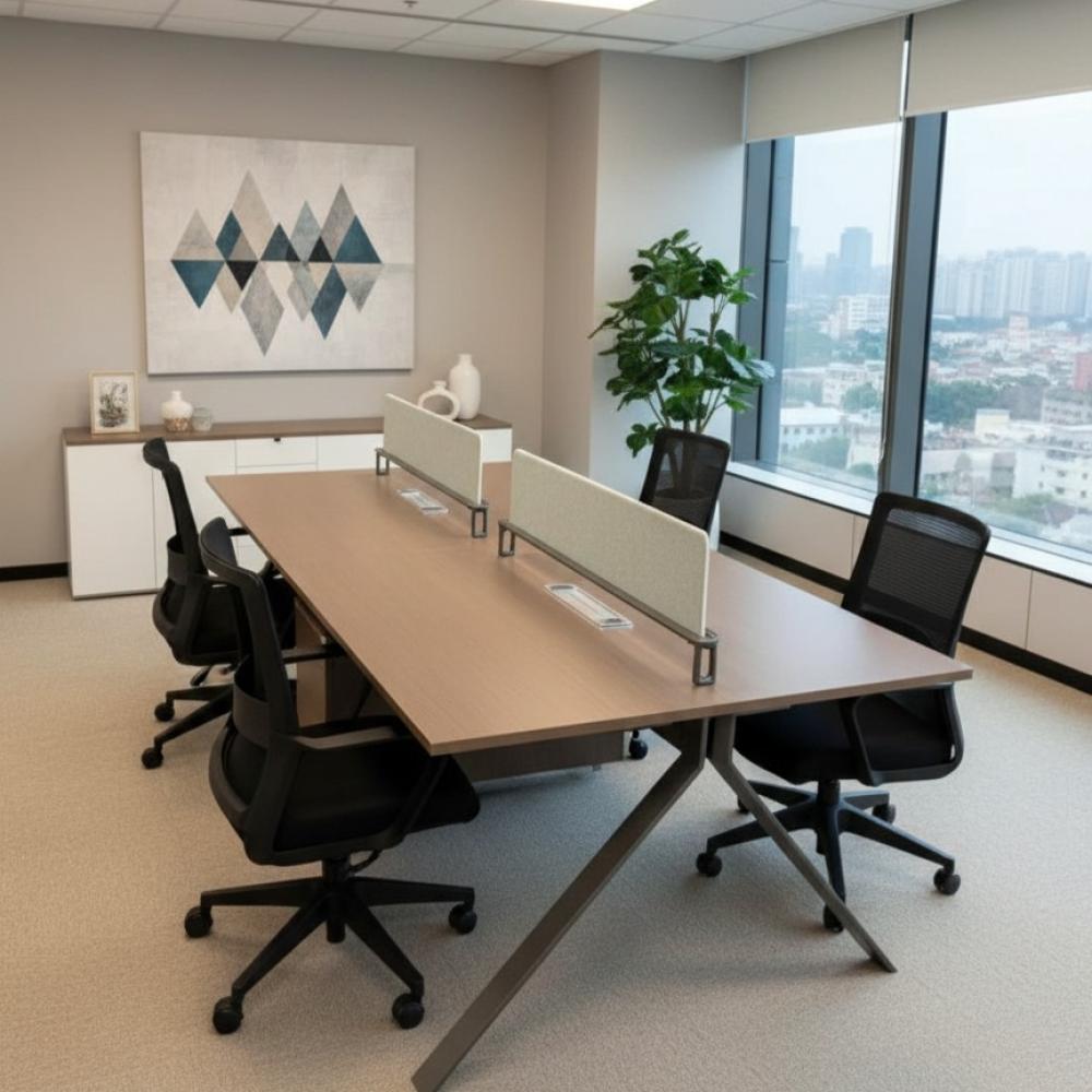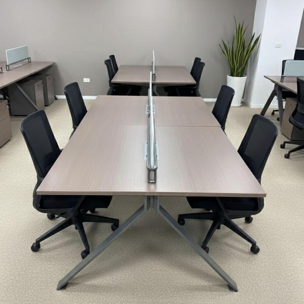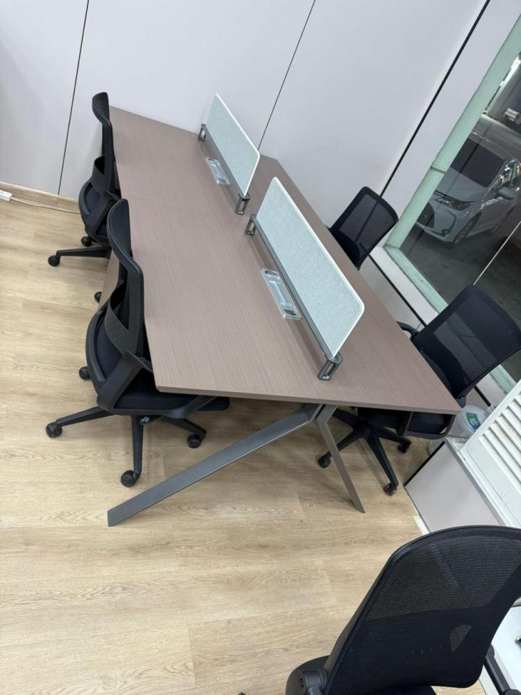 - سطح واسع عملي لكل موظف: يوفر كل مكتب مساحة كافية لوضع اللابتوب، الملفات، الأدوات المكتبية، وحتى معدات العرض الصغيرة، فيكون كل موظف قادرًا على العمل براحة وكفاءة دون تقييد.