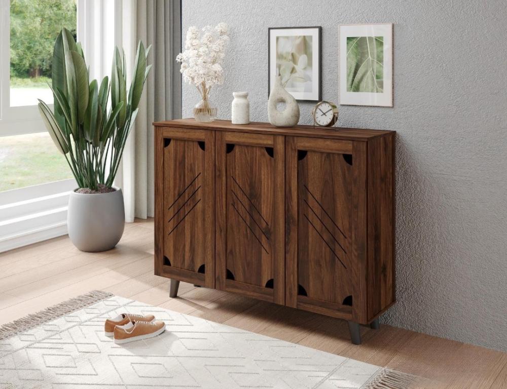 حوّل مدخلك أو أي مساحة في منزلك إلى منطقة منظمة وأنيقة بكل سهولة مع الجزامة العصرية بتصميمها الرحب والعملي، تجمع هذه الجزامة بين الجمال والوظيفة ببراعة تامة. تتميز بثلاثة أبواب مزخرفة بنقوش هندسية مائلة فريدة تضفي لمسة فنية معاصرة وتجذب الأنظار. توفر هذه الجزامة مساحة تخزين داخلية واسعة جدًا ومنظمة، مثالية لتخزين عدد كبير من الأحذية، مما يساعد على الحفاظ على مدخلك مرتبًا وخاليًا تمامًا من الفوضى. سطحها العلوي يوفر مساحة مثالية لعرض الديكورات، المفاتيح، أو النباتات لإضفاء لمسة شخصية. متوفرة بثلاثة ألوان جذابة: البني الفاتح ، البني الغامق، والخشبي، لتختار ما يتناسب تمامًا مع ديكور منزلك. أرجلها الرفيعة والمتينة ترفعها عن الأرض، مما يسهل عملية التنظيف ويضفي عليها مظهراً خفيفاً ومميزاً يكمل أي تصميم داخلي.